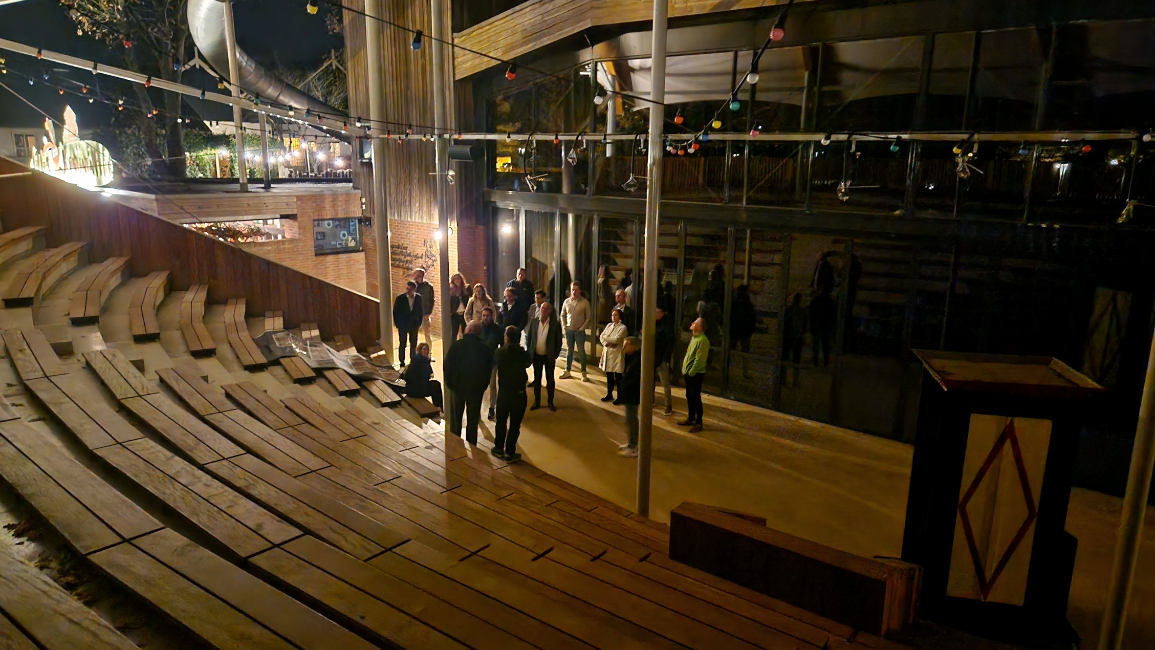 Een korte rondleiding door Polyned vormde een praktisch onderdeel van de avond. Polyned ontworp en produceerde een hoogwaardige theateroverkapping van technisch textiel, waaronder de constructies voor het Giga Konijnenhol Theater plaatsvinden. De groep bezocht het theater om deze toepassing op locatie te bekijken. Dit gaf een concreet beeld van hoe specialistische leveranciers bijdragen aan beleving en kwaliteit op recreatieparken.